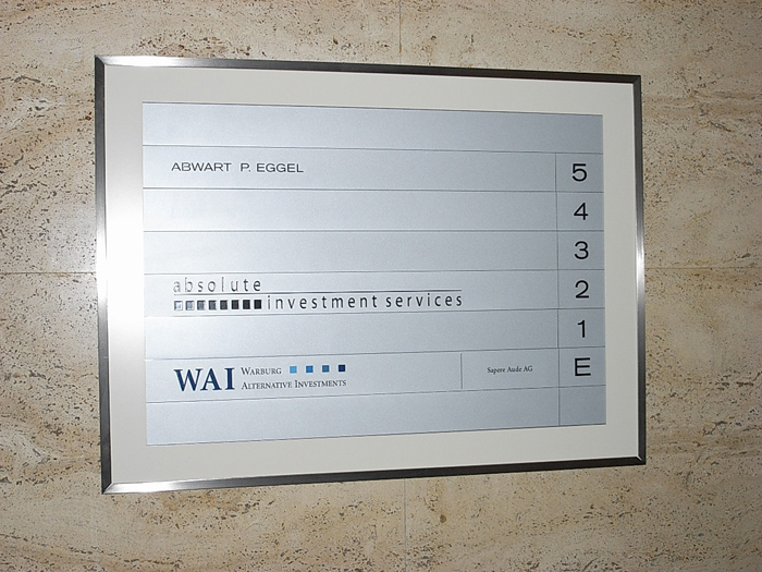 Beschriftungen und Leitsysteme von hohem Qualitätsstandard.